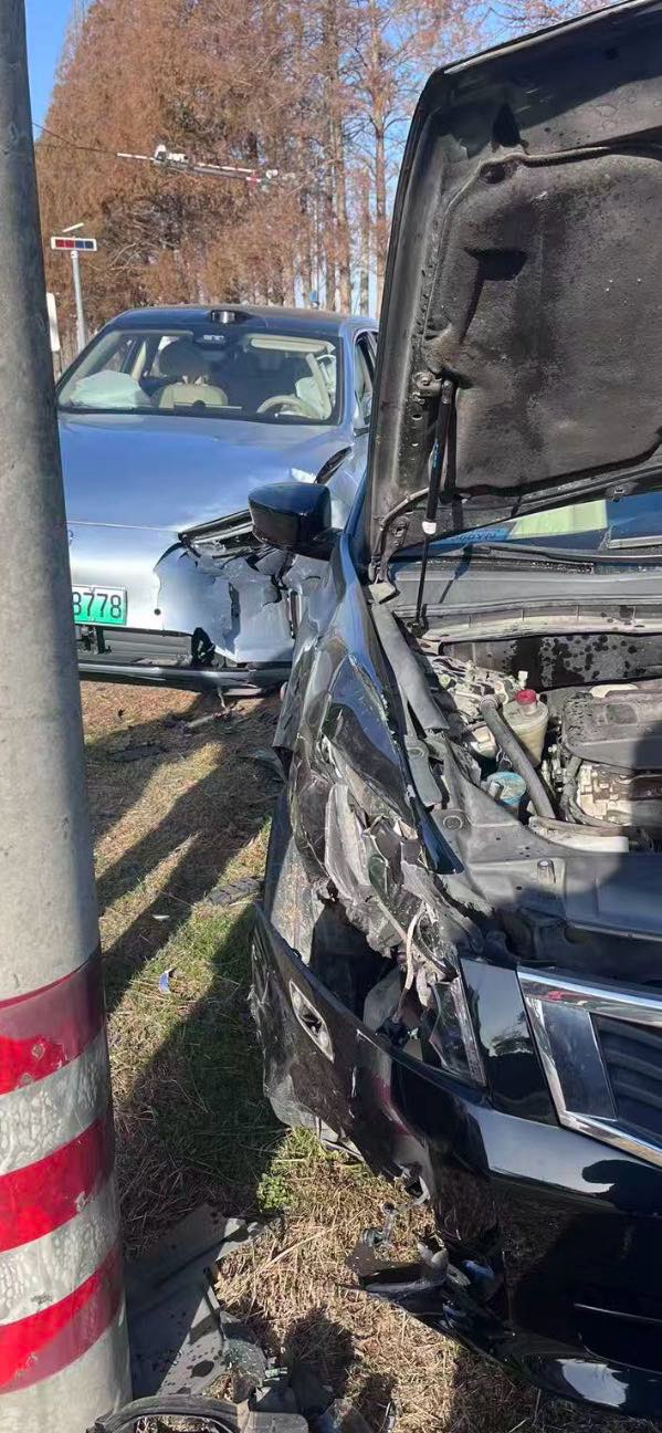 海盐落许线突发车祸、2车相撞。